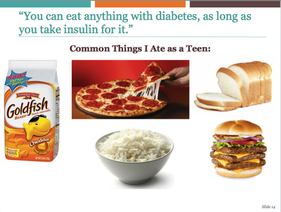 小提示# 3。我十几岁的时候就被告知,患有糖尿病的我可以吃任何东西,只要我服用胰岛素。所以我所做的。我在饮食方面做得不好…