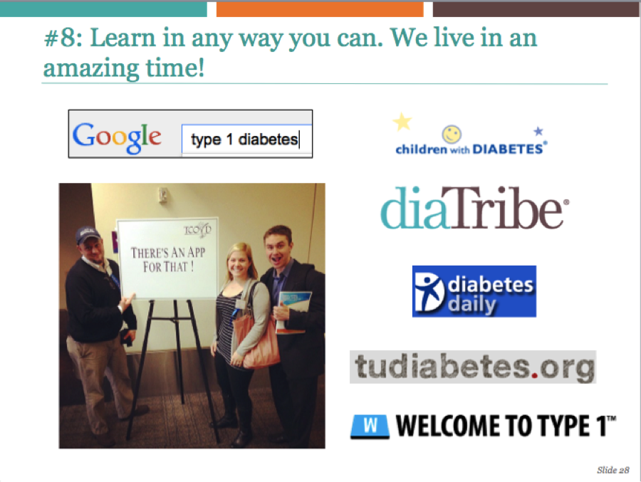 推特小结:@ asbrow1分享了在#T1D中生活的10大建议,直接从#CWDFFL15的100多名青少年面前展示出来
