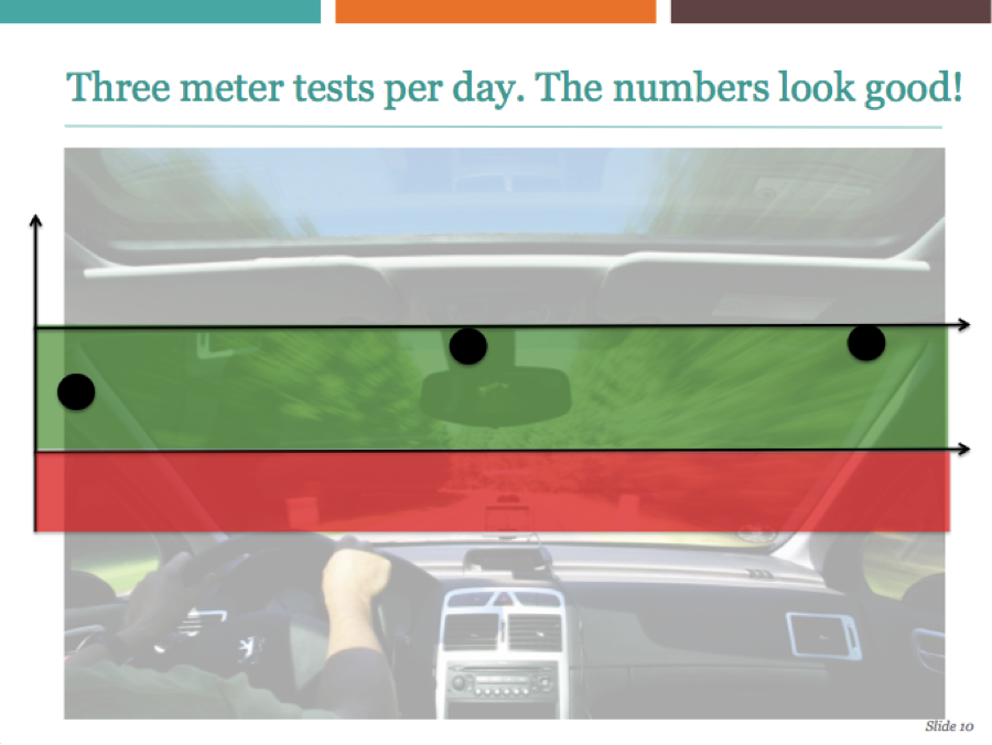 这是糖尿病的类似情况。我十几岁时通常每天只测试3-5次,就像开车时大部分挡风玻璃都被遮住一样。