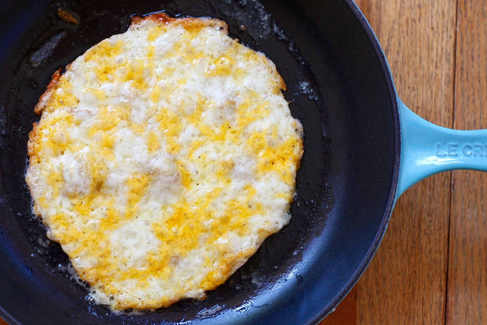 低碳水化合物玉米粉圆饼+磨碎的蒙特利杰克奶酪+萨尔萨+鸡丝+剩菜烤花椰菜