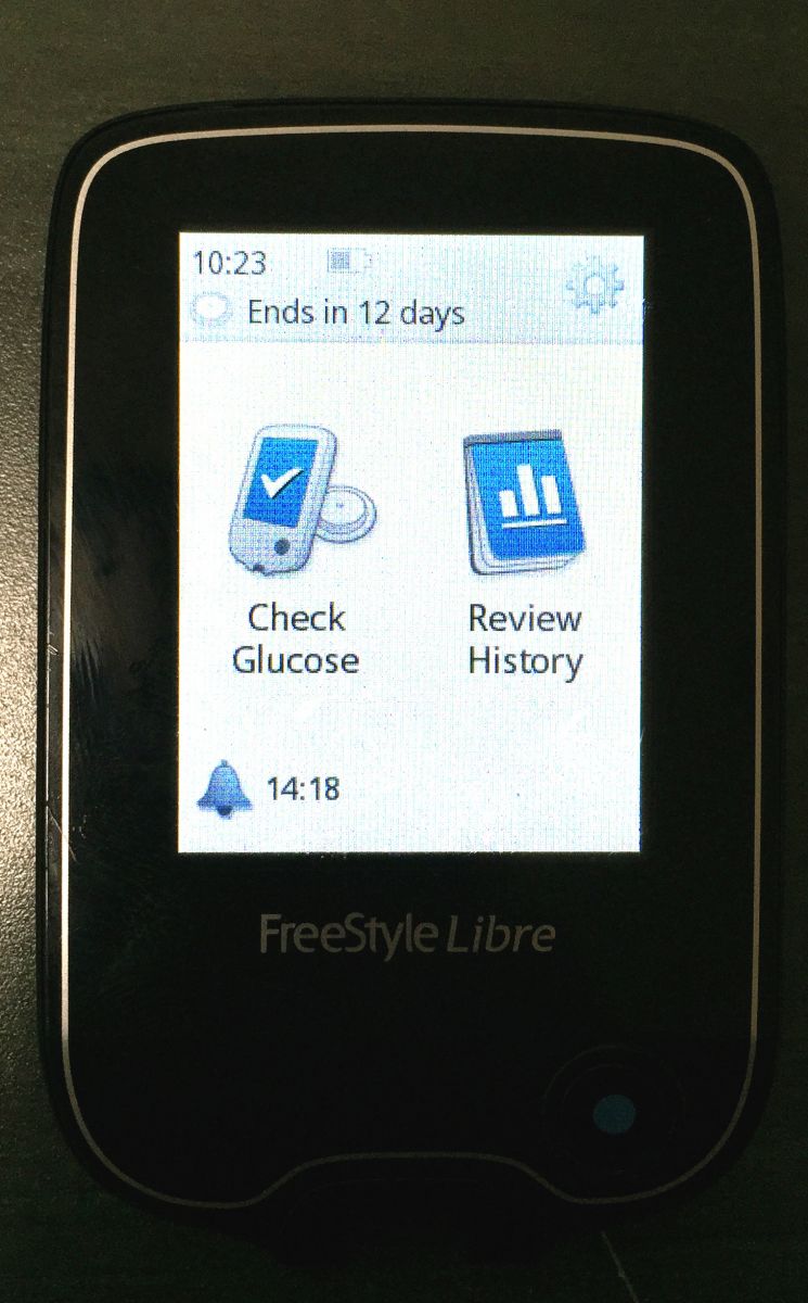 FreeStyle Libre阅读器采用雅培公司的FreeStyle Insulinx测量仪,并增加了一个清晰的彩色屏幕。该阅读器小巧、轻便,易于使用基于图标的触摸屏界面导航(检查血糖、历史记录和设置)。它有一个用于充电的微型usb接口(佩戴两周后,我们只需要充电两次,不过这取决于使用情况),还可以下载到Mac或PC的软件中。该阅读器还包括一个内置的FreeStyle血糖仪,用于Abbott推荐的确认手指棒(低血糖,快速变化,当症状与阅读器不匹配时)的少数情况。