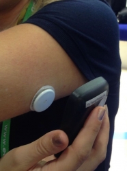这项为期14天的研究正在测试“雅培基于传感器的血糖监测系统”的安全性和准确性,我们已经知道它的名字雅培自由泳自由泳在欧洲(该公司去年10月在那里上市;看我们的测试驱动在这个问题)。值得一提的是,雅培公司的FreeStyle Libre系统在他们的上臂上安装了一个为期14天的传感器和一个独立的触屏阅读设备。当读数器靠近传感器时,传感器会传送瞬时血糖读数、趋势和8小时的历史。FreeStyle Libre系统不需要用手指校准,因此用户可以根据它的读数给胰岛素(除非血糖水平处于低血糖范围内,正在迅速变化,或者症状与系统读数不匹配)。试验的两个主要结果将是该系统的准确性和安全性,这取决于研究参与者所经历的不良和严重不良反应。我们相信,这是一项准确性研究,可以支持FDA批准这种变革性技术,所以这确实是一件非常重要的事情。