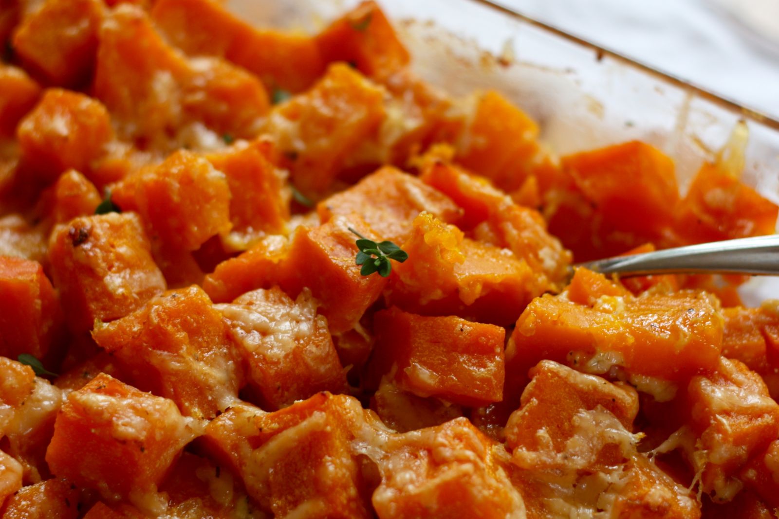 奶酪不在标题中,因为它太长了,但请放心,在这个烤架中有很多奶酪的美味。我喜欢做一份丰盛的蔬菜配菜,因为对于素食者来说,它可以做一道主菜。但如果很多人都吃这个,那就加倍。另外两件事:1)青葱有点挑剔,因为你必须sauté它们。我喜欢它们增添的美味浓郁,但你完全可以不吃它们。2)这个食谱中唯一困难的部分是将皮如皮革的南瓜切成剥皮的小块;如果你想从超市里已经有人制作好并放进袋子里的生方块开始,请这样做。你需要2磅。