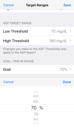 用户必须选择 -在要在“设置”菜单中收到这些新通知,并且在过去七天内最大的日期生成“最佳日期”通知。默认的距离目标是70-180 mg / dl中的70%,与最近的讨论对齐共识目标。