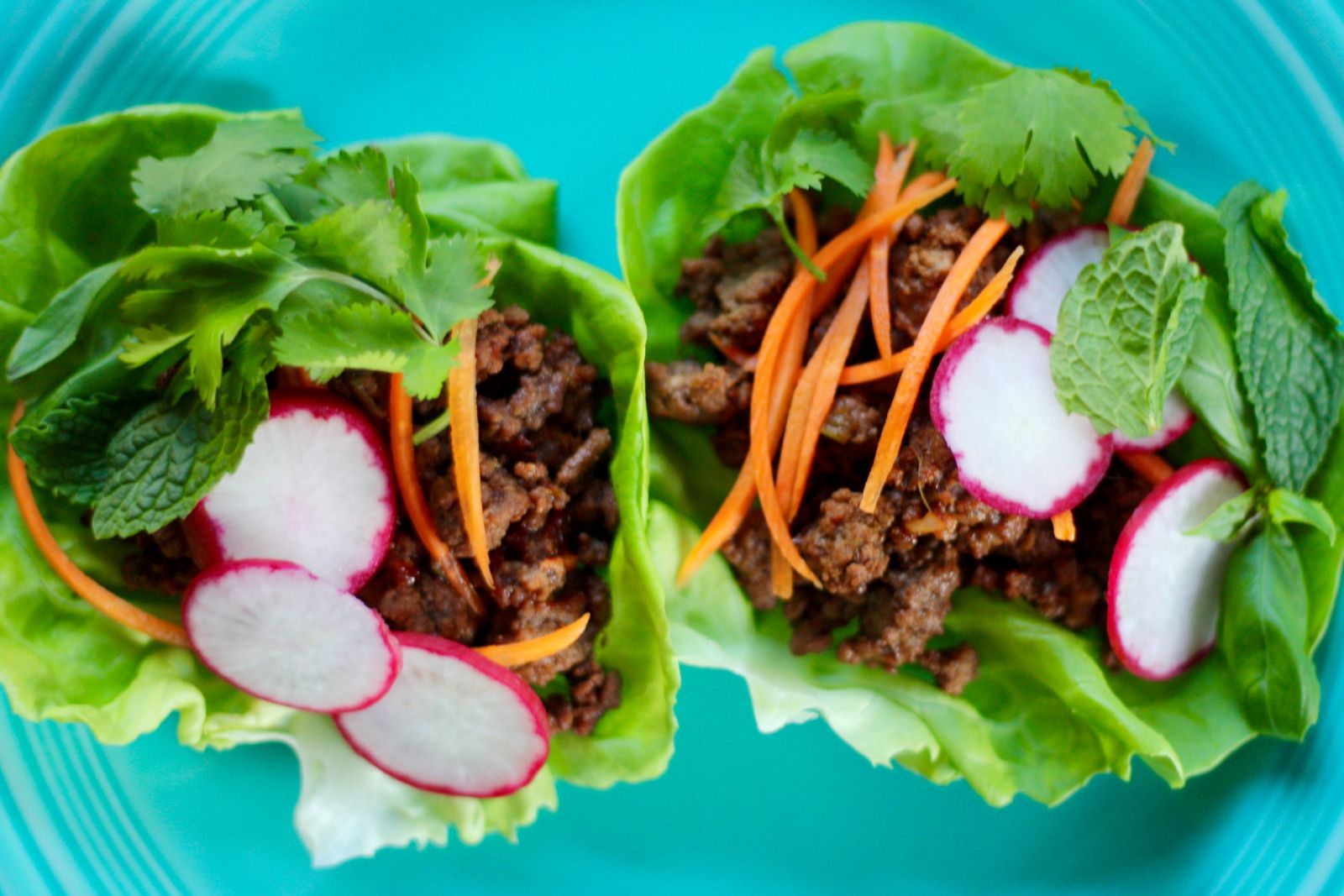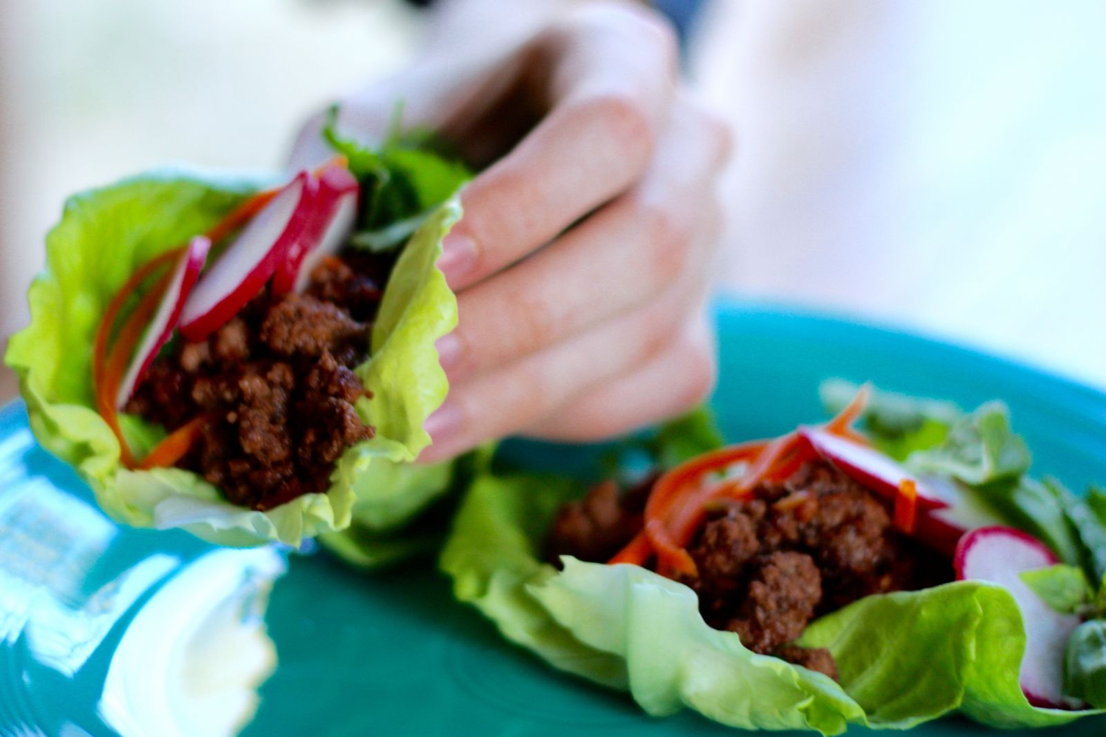 4.让餐桌上的人们自己动手吃生菜叶,他们应该把生菜叶看作是一种多叶的玉米卷壳,里面塞满了肉、香草、蔬菜和其他佐料。
