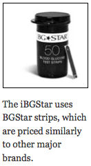 你可以在沃尔格林和Walgreens.com(74.99美元,包括10个测试条),在苹果零售店(!Apple.com(99.95美元,包括50条试纸)糖尿病护理服务和药房(71.99美元,包括10条试纸)。如果你更喜欢在当地非沃尔格林药店买iBGStar,他们也可以帮你买,但这取决于他们的分销商。BGStar彩带的定价与其他主要彩带品牌相似(Walgreens.com网站50条彩带的零售价为64.99美元)。值得注意的是,赛诺菲正在提供一种付费储蓄计划限制自付费用不超过20美元每购买一年,尽管某些限制可能适用。