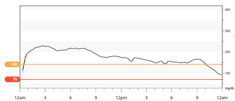 这是来自那个夜晚的剩余时间的CGM数据,第二天