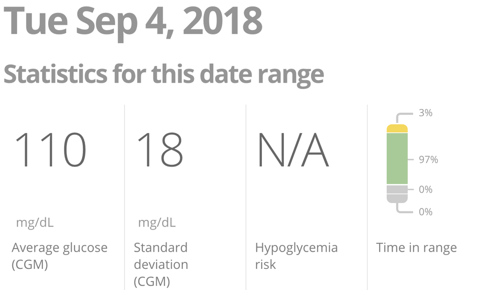这是一个惊人的改善:我的血糖从平均176毫克/分升提高到110毫克/分升,时间范围(70-140毫克/分升)从10%提高到97%。这种改进也得到了实现一半同样多的胰岛素——30单位!(这两天我都没吃饭。)术后压力的减少可能促成了今天的第2个改善,但时间轴显示,改用非葡萄糖IV疗法产生了强大而直接的影响。