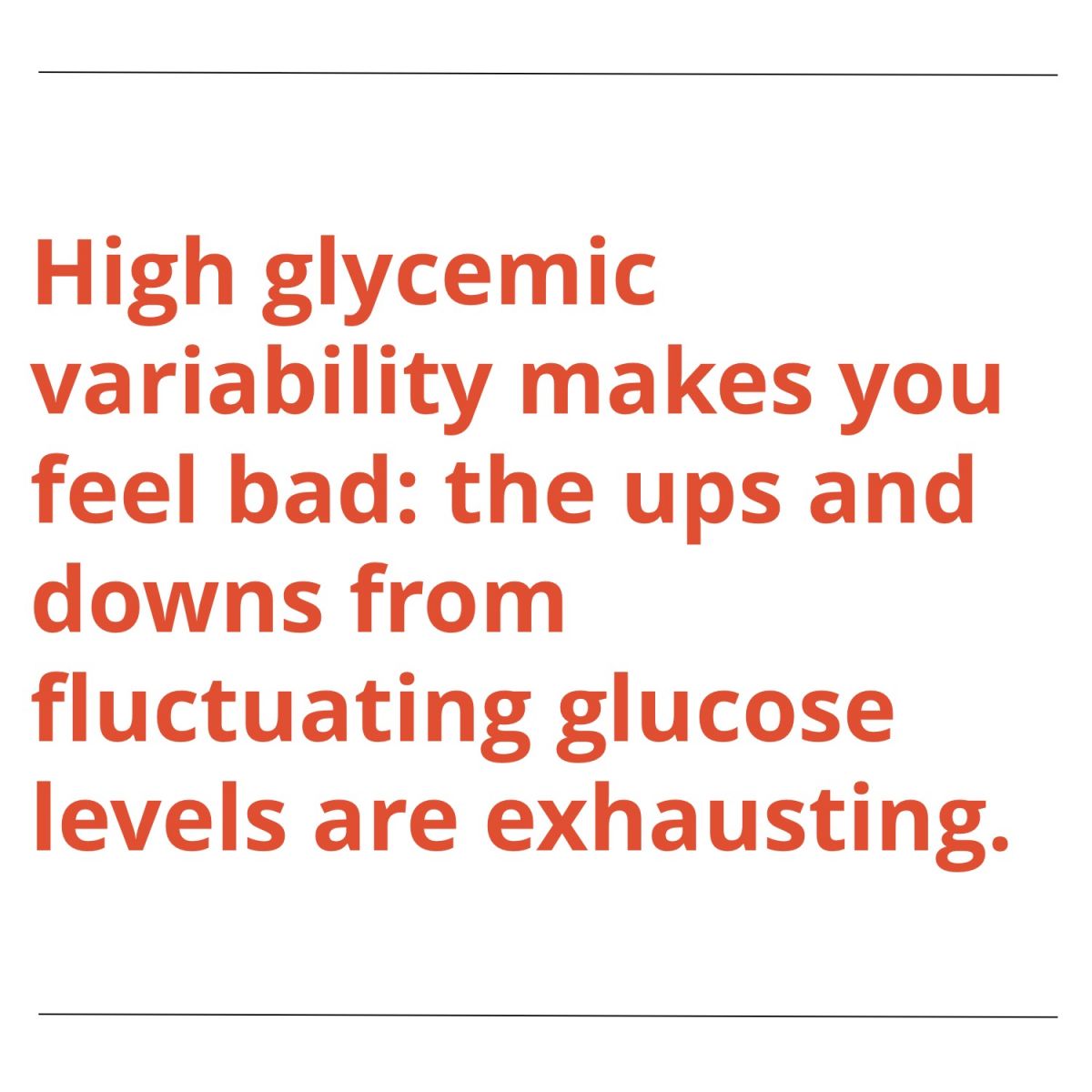 问问自己,当你的可变性高、中、低时,你感觉如何。如果你觉得低糖变异性更好,试着识别模式-你做了什么?你要测试什么?记录下你的感觉,看看降低葡萄糖变异性的技巧是否能让你感觉更好、更有效率。亚当对减少葡萄糖变异的建议是在他的书中总结.