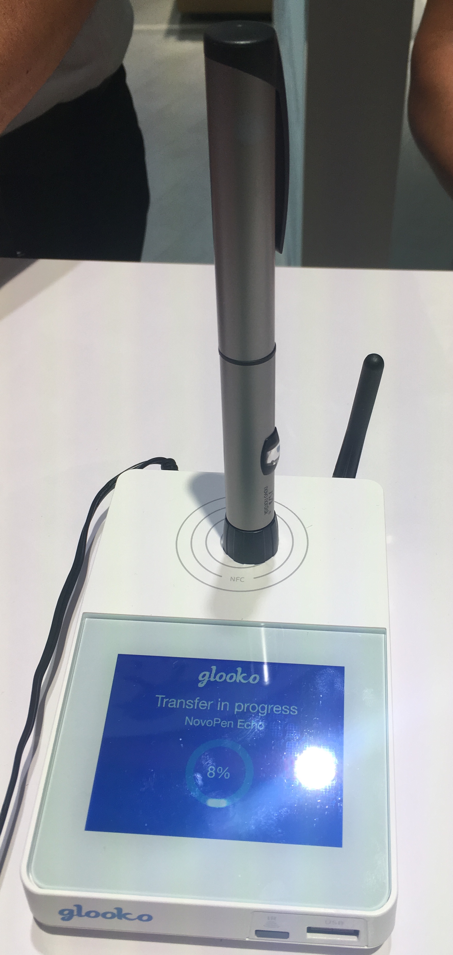诺和诺德公司已经开发出了自己的可重复使用近场通信(NFC)连接胰岛素笔,名为NovoPen 6,目前正在瑞典进行试点,并在美国的一些研究中使用。该产品是基于现有的回声的钢笔它被动地跟踪和存储胰岛素剂量。像FreeStyle Libre一样,目前的版本使用NFC,这意味着它必须被近距离扫描,才能将数据从笔转移到另一个设备上。在6月份的美国糖尿病协会(ADA),我们得到了第一个现场演示——医生可以将患者的胰岛素数据上传到一个Glooko/Diasend kiosk传输器,让他们同时查看血糖和注射数据。笔的刻度盘显示最后一次剂量的大小和距离最后一次剂量的时间。最终,我们猜测诺和诺德公司会在笔上安装蓝牙技术,这样数据就可以源源不断地流向应用程序。目前,诺和诺德并未透露推出时间,但通过与gloko和IBM Watson的合作,诺和诺德似乎非常致力于数字健康领域。